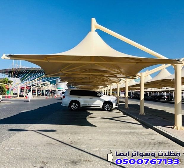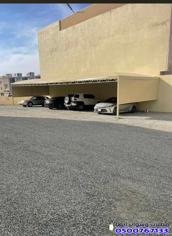 - مظلات سيارات المحالة وهي توفر الحماية التامة للسيارات من أشعة الشمس والأمطار، كما تتوفر بتصاميم متعددة مثل المظلات الهرمية، القماشية، أو الحديدية.