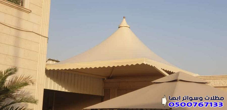 - مظلات مخروطية تتميز بتصميمها الفريد الذي يضيف لمسة جمالية للمكان. تستخدم بشكل شائع في المواقف العامة والمناطق التجارية.